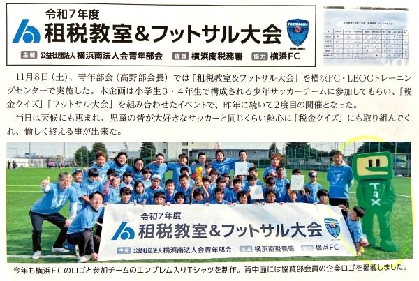 横浜南法人会の活動の一環として小学生を対象にした 「租税教室&フットサル大会」に参加しました。