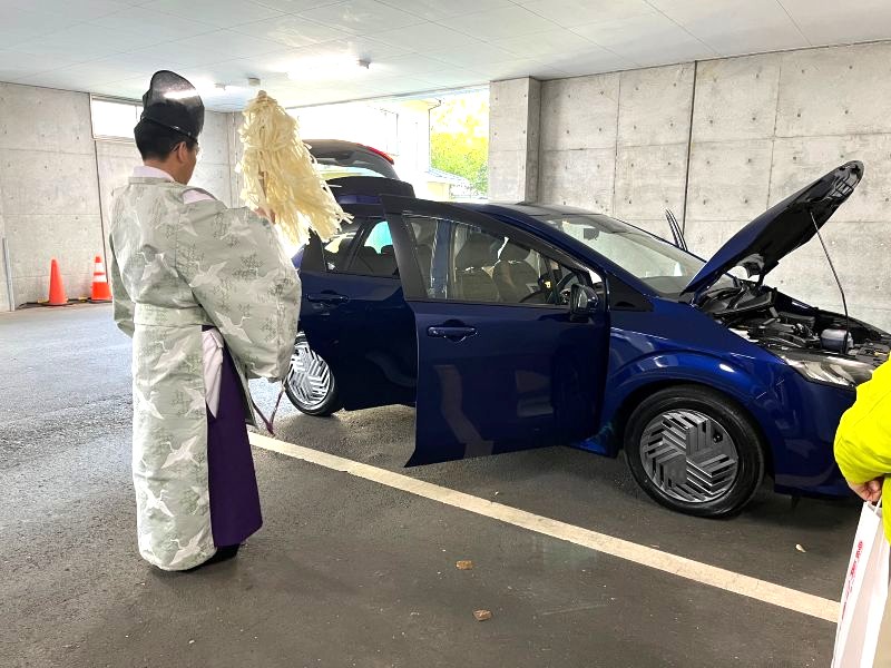 新車の納車にあたっては、社員の安全と無事故での業務遂行を願い、神社にてお祓いを行いました。